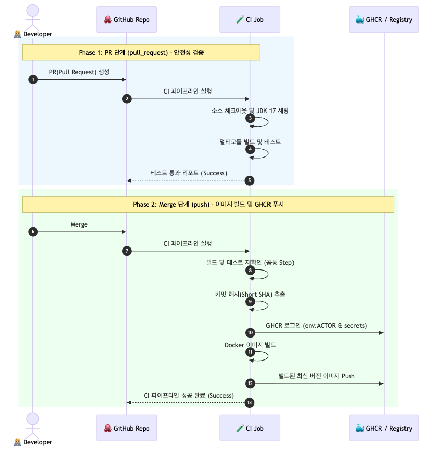 # 1. CI 작업 (코드 빌드, 테스트, 도커 이미지 푸시)