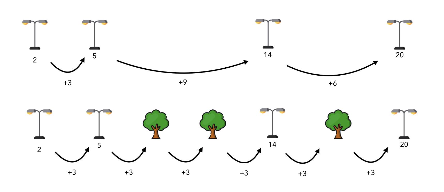 그럼 맨 처음 입력했던 수 (= 제일 가까운 가로수의 거리)와 맨 마지막에 입력했던 수 (= 제일 먼 가로수의 거리) 사이에 새롭게 심겠다는 의미가 되고 그 중에서 최소한으로 심겠다라는 의미입니다.