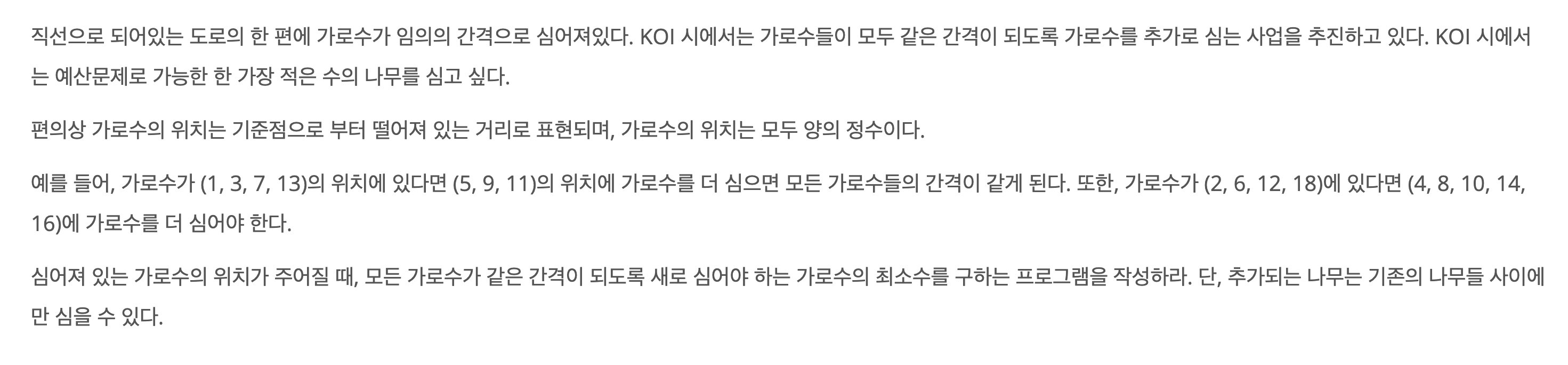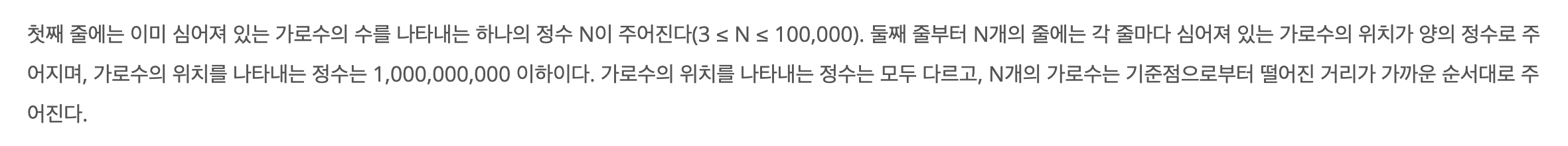 가로수 = 임의의 간격으로 이미 심어진 것