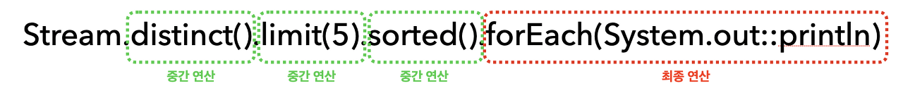 중간 연산 : 연산 결과가 스트림인 연산이다. 스트림에 연속해서 중간 연산할 수 있다.