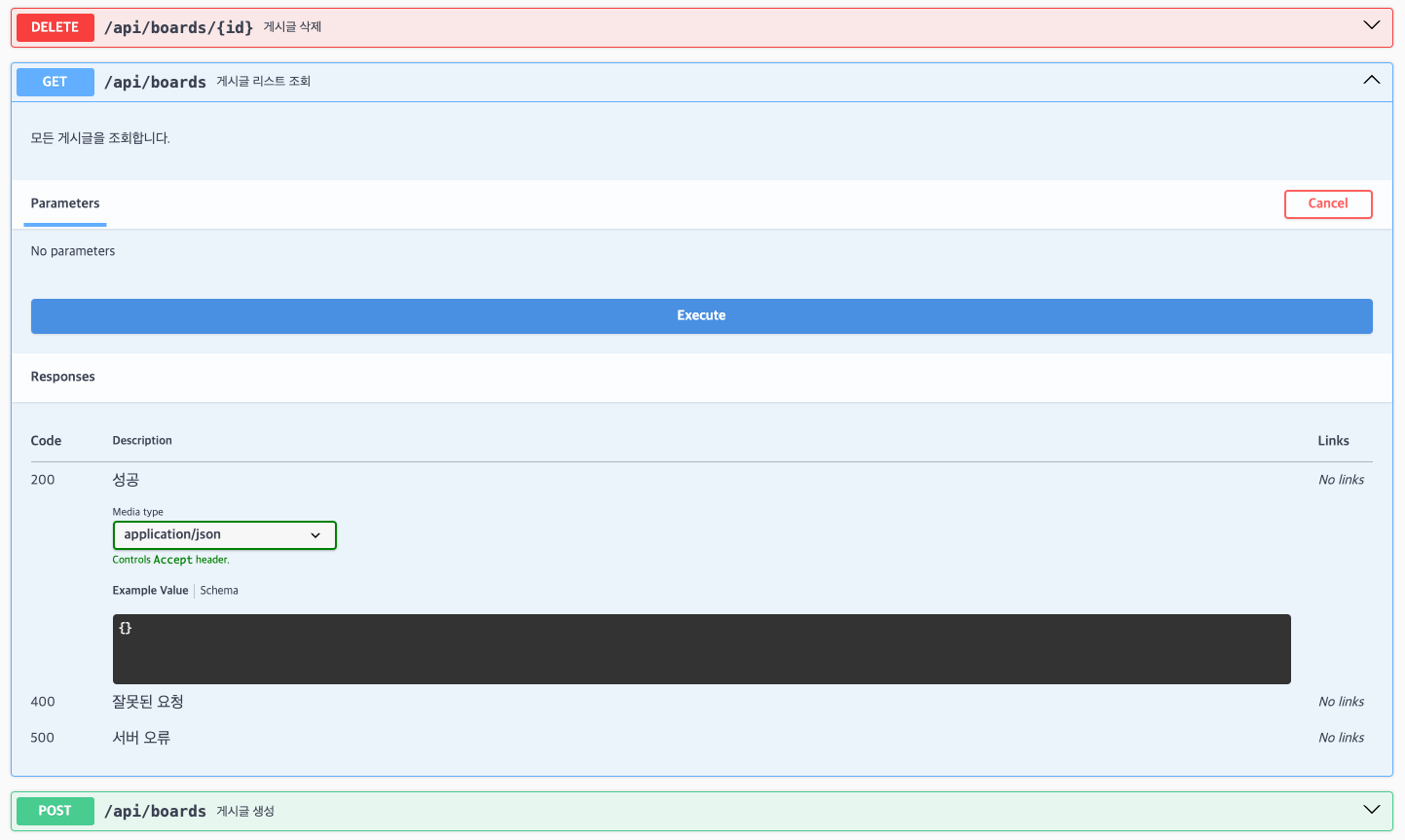 @Operation(summary = "게시글 리스트 조회", description = "모든 게시글을 조회합니다.")