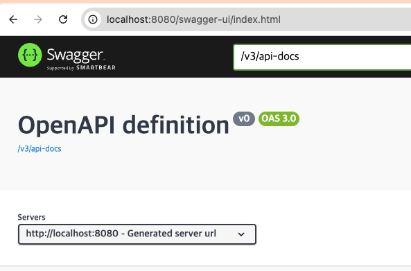 스웨거 의존성을 추가하게 되면 아래와 같은 URL을 입력하고 들어가면 Local 스웨거(Swagger) UI를 볼 수 있습니다.