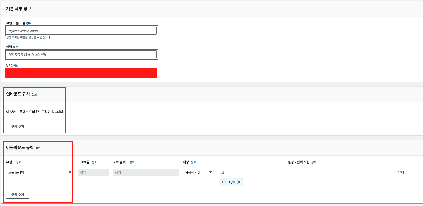 - 설명 : 해당 보안 그룹의 설명
