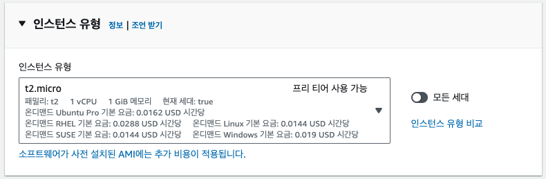 t2.micro로 선택하면 됩니다.